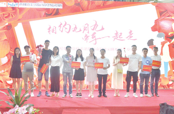 9月9日下午,“相约九月九,牵手一起走”2018年安庆市第四届南翔光彩杯相亲交友会在南翔光彩国际家居博览中心举行,来自全市各机关、企事业单位200多位青年男女职工齐聚相亲会,经过自我介绍、游戏互动、才艺展示、现场表白等几个环节,共有7对青年男女牵手成功。