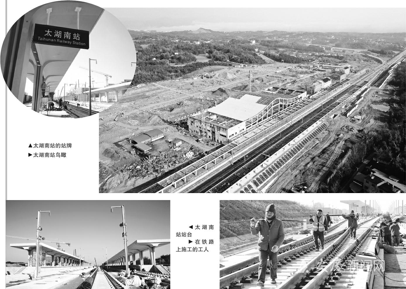 笔者还在现场看到,南站旁的两个各为450长、8米宽的站台基本建成,“太湖南站”的站牌也已高高挂在站台醒目的位置,让人真的感觉太湖已进入了“高铁时代”。在长长的站台之间,两条轨道穿越而过,驰向远方。同时,站房一侧的宿舍、派出所等用房主体结构亦基本建成。