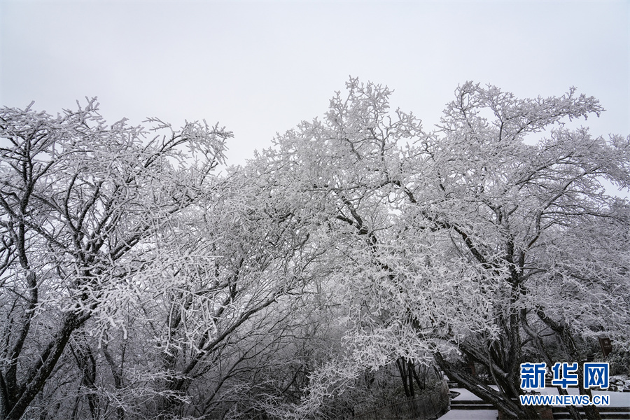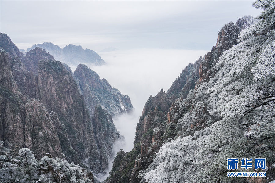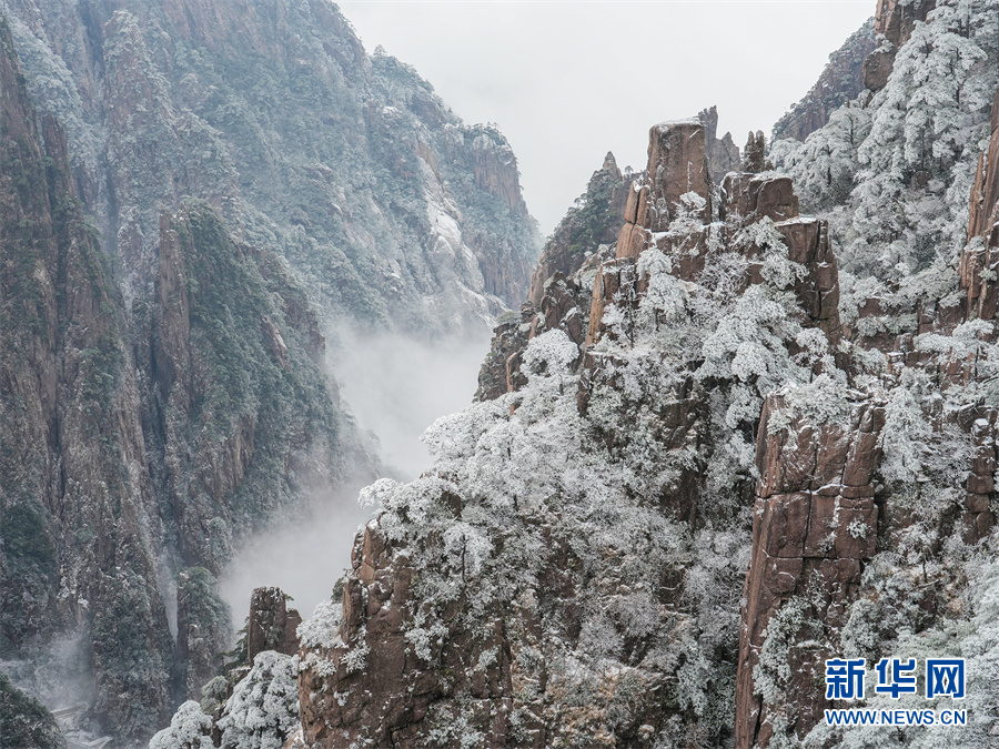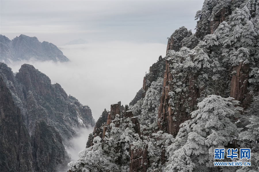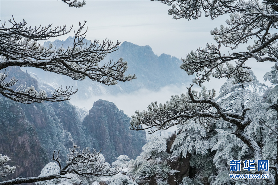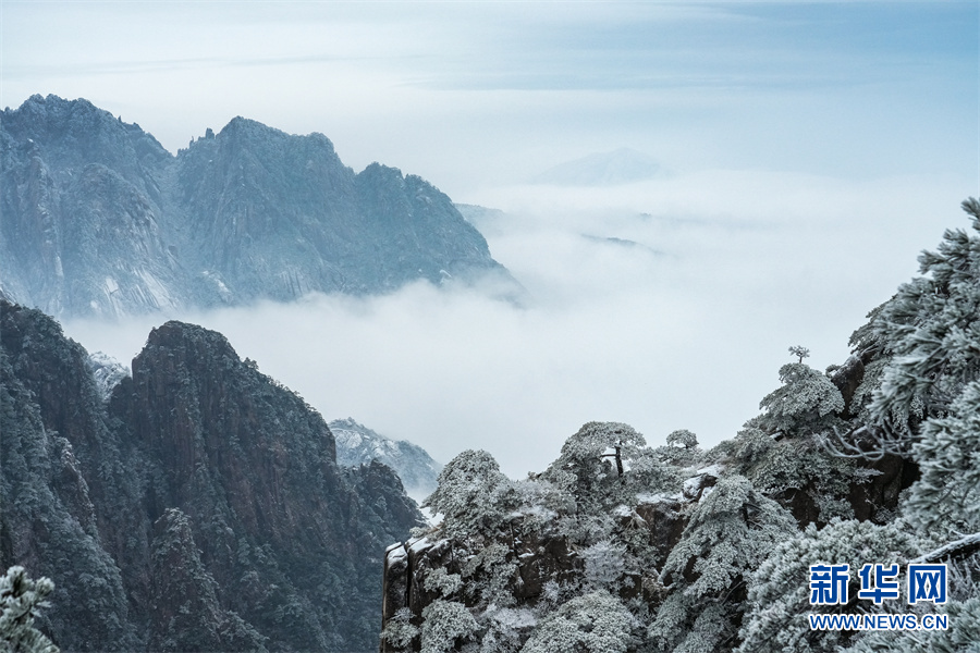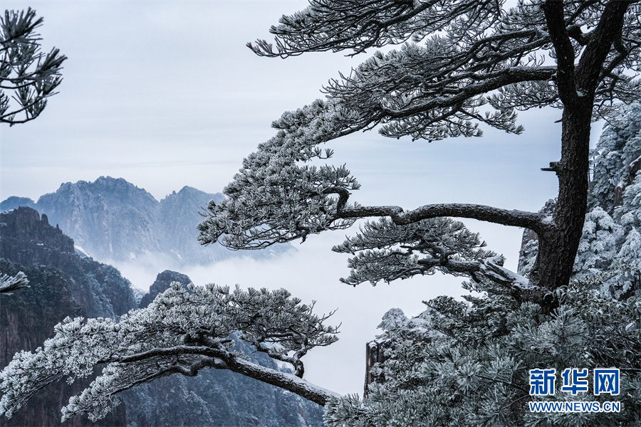 2月14日,受强冷空气影响,安徽黄山风景区气温骤降,出现了初春罕见的雾凇美景。新华网发(水从泽 摄)