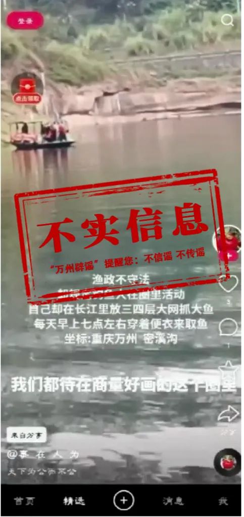 重庆万州渔政人员在长江里放网抓鱼?谣言!