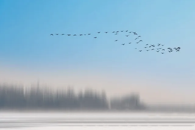 古人认为,大雁能感知到天地阴阳之气的浮动。因此小寒时节,雁阵会顺阳气而动,启程北归。
