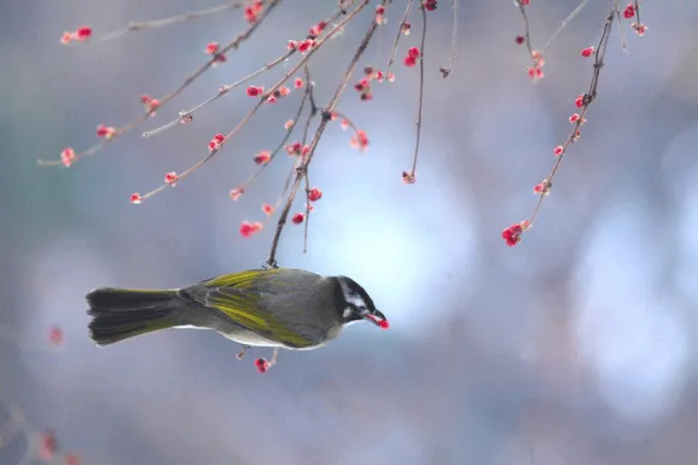 作为信使的它们,也早早觉察到春意萌动,在寒枝上欢蹦乱跳,搭窝筑巢迎春归。