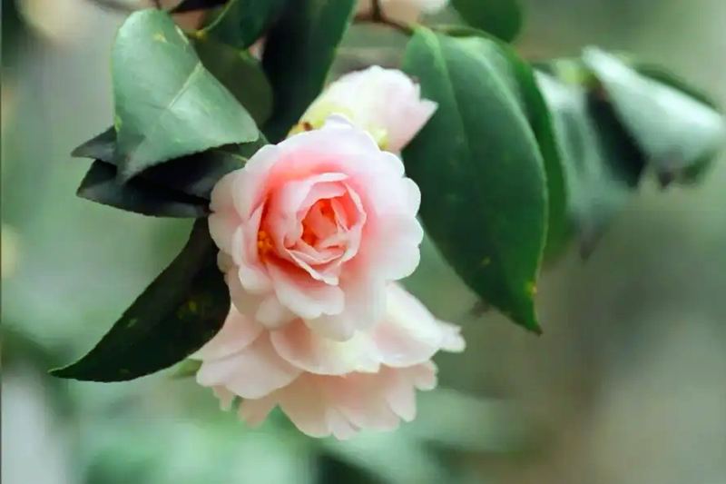 山茶是一种很“内秀”的花。明明花开之时似桃李一般娇艳温柔,却藏着一副松柏的傲骨。不怪《秘传花镜》感叹说:“若无此花点缀一二,则子月几虚度矣。”