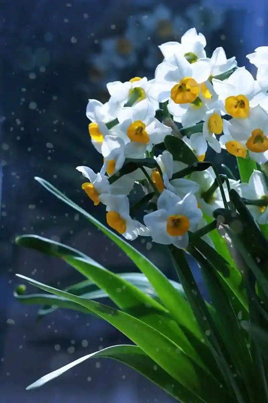 最美的那株水仙通常都开在家中的桌案上。从一颗球,慢慢在水中抽芽、结苞、开花.....清香漾满屋室之时,新岁也将至眼前了。