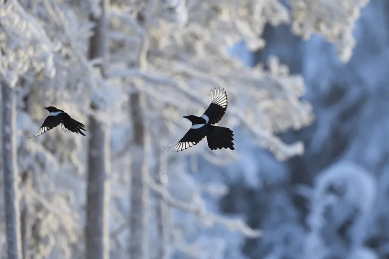 喜鹊,又名“报春鸟”。