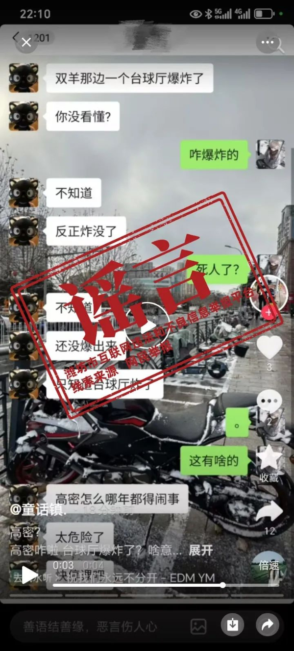 山东潍坊高密市一台球厅发生爆炸?谣言!