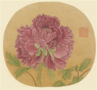 宋代院体画以工笔写实绘牡丹,勾勒细腻如生,设色浓丽雅致,画风工整严谨,通过对物象的极致写实表现宋代院体画所追求的“真实感”。画家以绢素为镜,照见万物生息的天道秩序,不仅是宋代理学“格物致知”思想的视觉化,也作为“太平丰裕”之符号,成为家国昌盛繁荣的象征。明代,徐渭以泼墨大写意颠覆传统,用水墨替代设色,凸显牡丹“劲骨刚心”的精神内核。其以逸笔取代工笔,笔下枝叶恣肆狂放,甚至“以衰草败叶之态入画”,借此表达对命运的抗争和对世俗富贵观的解构,从而将牡丹从宫廷装饰转化为文人精神的载体,牡丹之画也由文人审美实现了对宫廷趣味的超越。