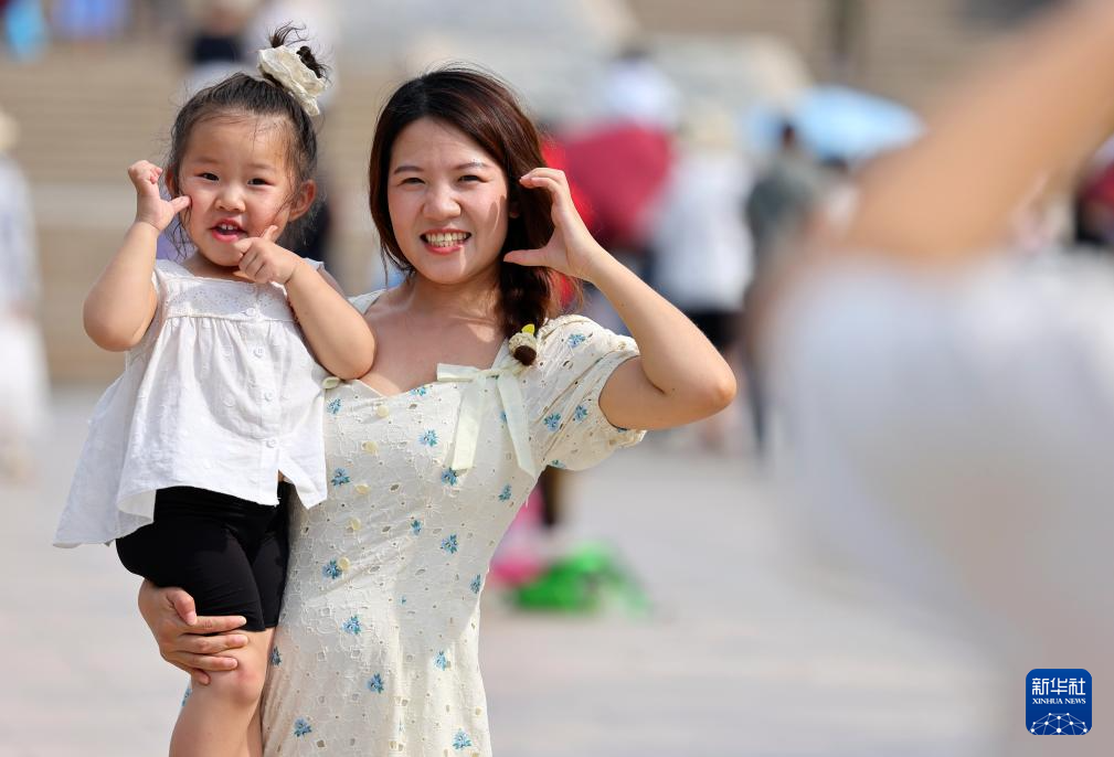 5月3日,家长带着孩子在海南省三亚市南山文化旅游区游览。新华社发(陈文武摄)