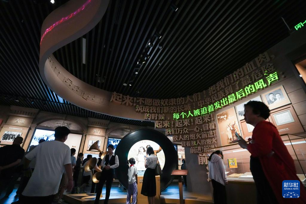 7月8日,参观者在中国人民抗日战争纪念馆参观《为了民族解放与世界和平》主题展览。新华社记者 张晨霖 摄