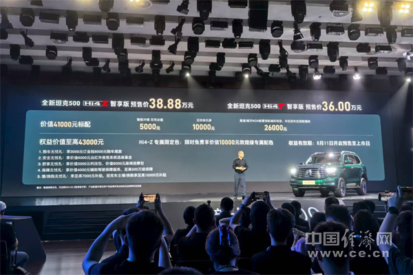 8月11日,在坦克品牌“开启越野新时代”发布会上,全新坦克500智享版正式开启预售。新车定位为“全场景智能豪华越野SUV”,推出全新坦克500 Hi4-T智享版、全新坦克500 Hi4-Z智享版,预售价分别为36.00万元、38.88万元。新车不仅将NOA智慧领航辅助驾驶、车位到车位领航辅助、17.3英寸后排娱乐屏、冷暖双用冰箱等智能配置做到全系标配,还给出了预售期间订车至高43000元的5重豪礼。