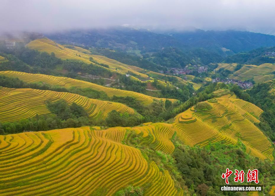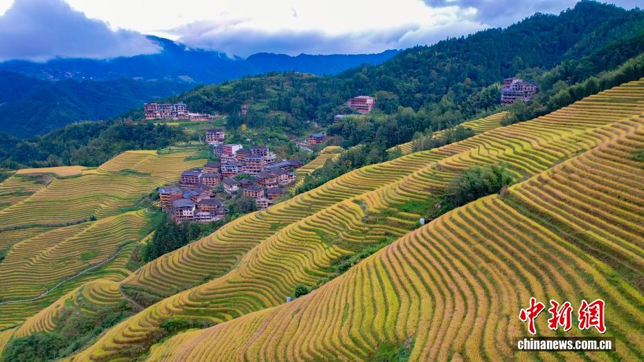 广西龙胜金坑寨梯田现“金色海洋”盛景