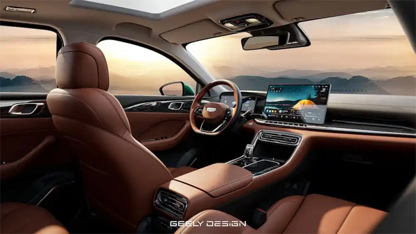 第5代帝豪内饰贯彻“豪华平权”理念,大面积软质包覆搭配精致镀铬饰条,并提供旷野棕、云舒灰、星夜黑三种座舱配色;同时配备水晶挡把、14.6英寸高清大屏及50W无线风冷快充,其中无线快充配备主动散热与遗忘提醒功能。