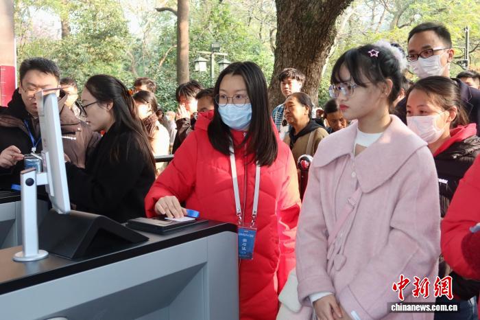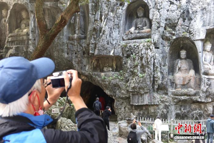 12月1日,游客有序进入杭州灵隐飞来峰景区。当日,杭州灵隐飞来峰景区(含灵隐寺、永福寺、韬光寺)正式实行免票开放,景区同步实行“实名预约、分时游览”管理机制,首日预约人数达3.15万人次。中新社记者 曹丹 摄