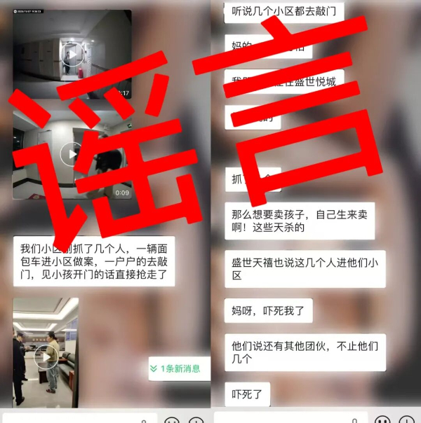 12月10日,广西贵港港北公安接到群众反映:一网民在贵港某小区业主群内发布“我们小区抓了几个人,一辆面包车进小区作案,一户户的去敲门,见小孩开门的话直接抢走了”等信息。