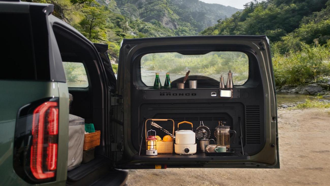 围绕露营与户外使用场景,福特智趣烈马创新打造三大特色功能:第一,是行业首创的“一键升顶”功能。36厘米额外高度让车内空间更舒展,且能智能感应风雨,10秒快速自动关闭,即便天气突变也能从容应对。第二,同级独有的“一键成床”方案。无需搬动行李,一键即可放倒座椅,形成近2米长大床,无论是长途驾驶或户外露营,都能随时享受高质量睡眠。第三,是同级唯一的具有功能尾门设计的“山野厨房”系统。在多功能电吸尾门上,原厂安装能承重18公斤的尾门桌板,配合6.6kW外放电功能,尽情和家人朋友享受山野美食。