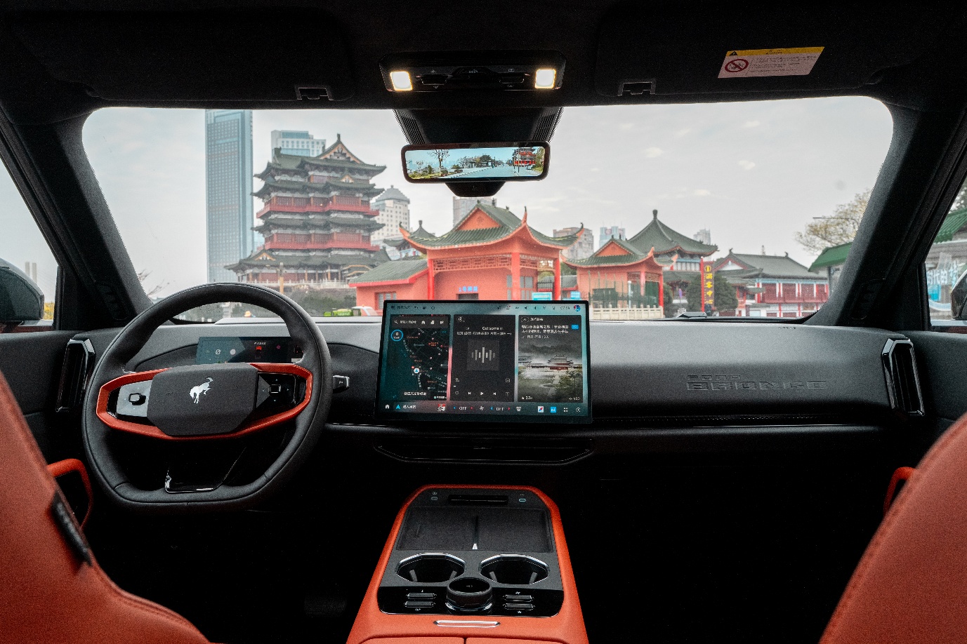 在越野能力方面,智趣烈马继承烈马家族的越野基因。新车全系搭载智能四驱系统,并在部分版本上配备前后机械差速锁及多种越野辅助功能,拥有30°接近角、32°离去角以及600mm涉水深度,能够从容应对多种复杂路况。“烈马掉头”功能实现同级最小3米级转弯半径,让整车在狭窄路段依然灵活。8种全地形模式、越野360°全景影像与透明底盘系统,共同构建540°全景视野,显著降低越野操作门槛。