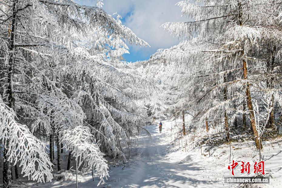 近日,一场大雪将湖北省建始县高岩子林场覆盖,林场内万亩落叶松身披银装,天地间仿若一幅静谧的冬日画卷,吸引游客前来踏雪寻景。高岩子林场地处鄂渝边界,总面积约5.1万亩,森林覆盖率超93%,是集生态保护、森林康养和观鸟旅游于一体的国家级公益林区。