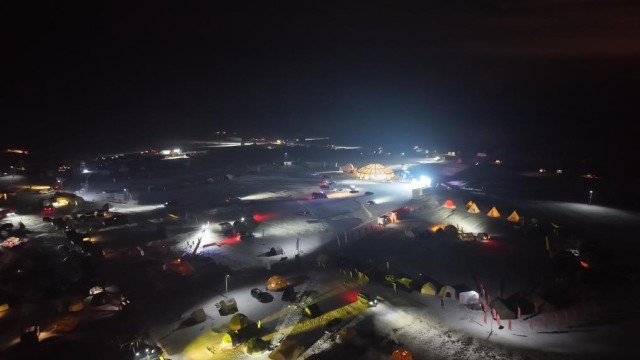 夜幕下,营地上的帐篷如繁星点点。新华社发(吴瀚 摄)