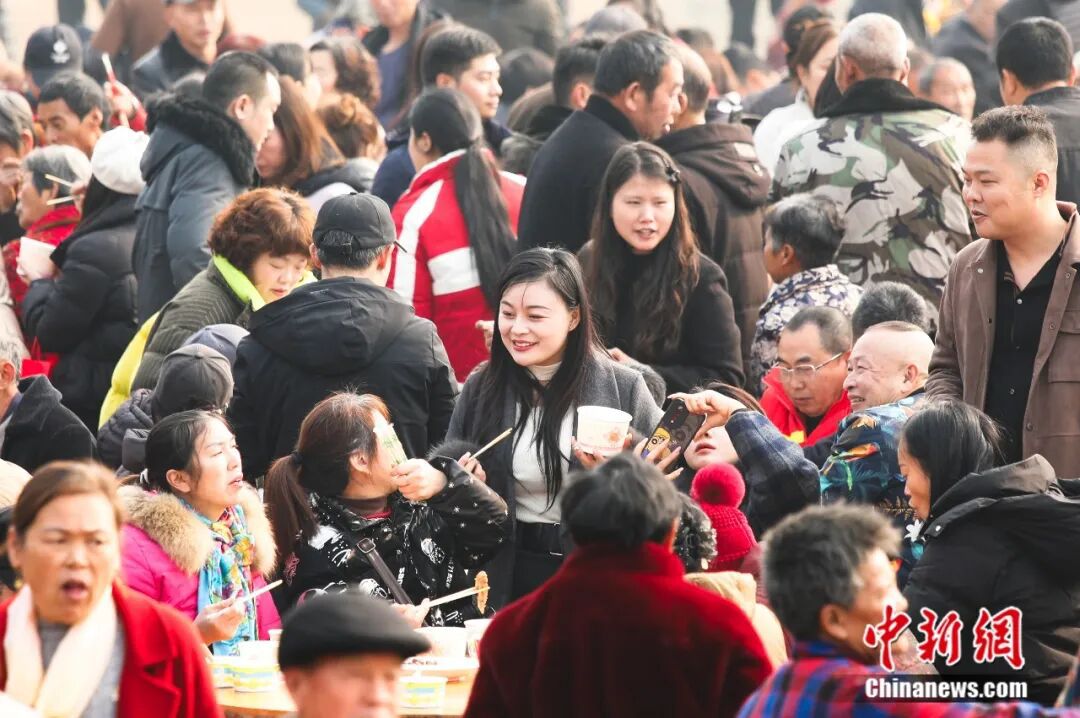 网友“呆呆”家门前的刨猪宴,食客品尝美食。谌永恒 摄