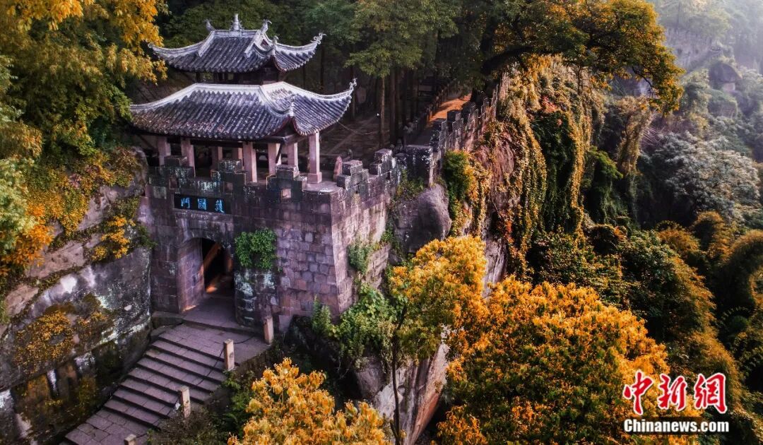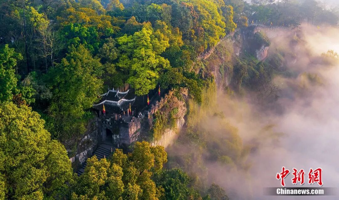 公元1243年至1279年在2.5平方公里的弹丸之地上合川军民用智慧和勇气凭借依山傍水的绝佳防御体系在钓鱼城坚守孤城长达36年创造了军事上凭险守城、以步制骑、以少胜多的军事奇迹岁月如斯悬崖峭壁间的“护国门”依旧巍峨
