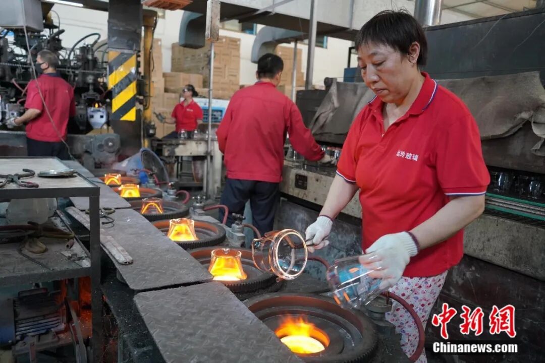 位于合川的清平玻璃返乡创业园内,工人正在制造玻璃器皿。重庆市人力社保局供图