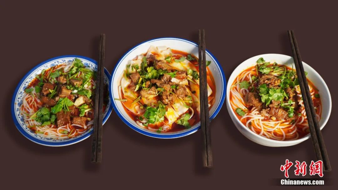 用猪肉、鸡肉、羊肉、羊杂、牛肉等做臊子的米粉是唤醒合川人清晨的鲜香慰藉