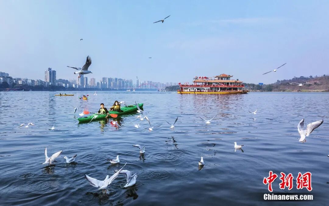 三江交汇处的江面上,海鸥齐飞。曹利文 摄