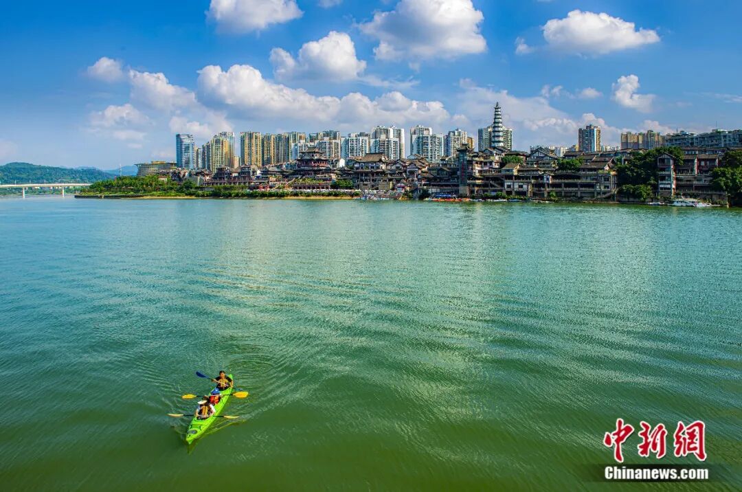 合川文峰古街外,碧水荡舟。胡维秀 摄
