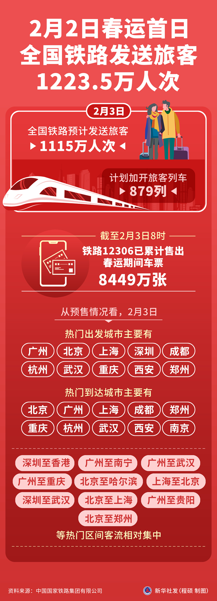 2月2日春运首日全国铁路发送旅客1223.5万人次