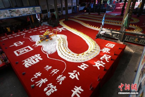 福州传统的敬老节——拗九节前夕,由8吨米精心堆砌而成的长达百米的“米龙”,在福州市仓山区城门镇胪雷村亮相,吸引游客、市民慕名前来观赏。
