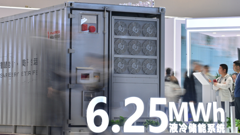 4月2日,参观者在第十四届储能国际峰会暨展览会上了解由大电芯构建的6.25MWh液冷储能系统。新华社记者 尹栋逊 摄