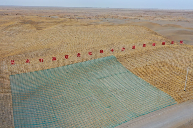 绿围脖+铁路+公路 新疆把塔克拉玛干抱了又抱